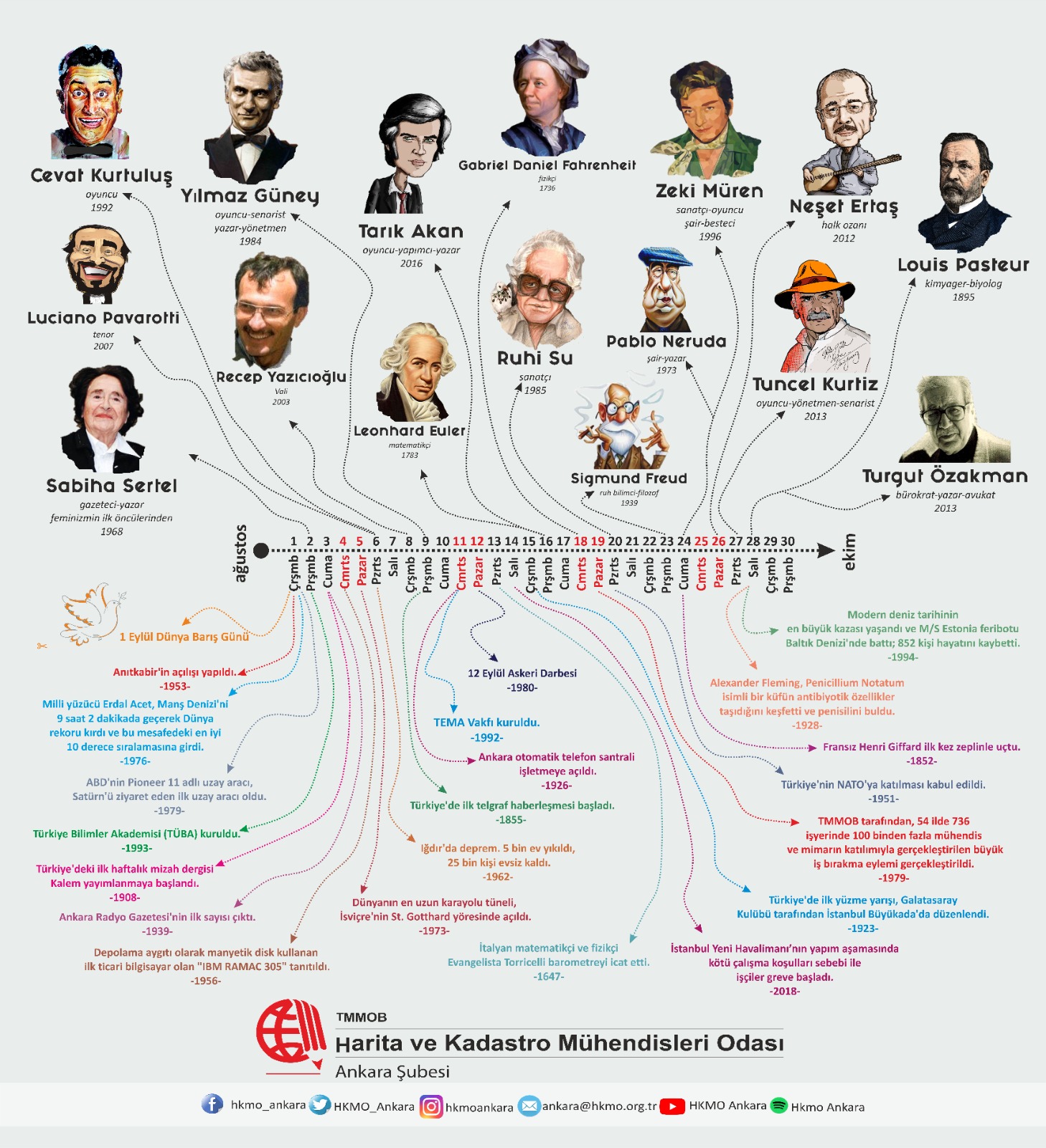 HKMO Ankara Şubesi; bazı tanınmış isimlerin ölüm yıldönümlerini ve tarihteki önemli günleri içinde barındıran almanak görselini sosyal medya hesabından paylaştı.