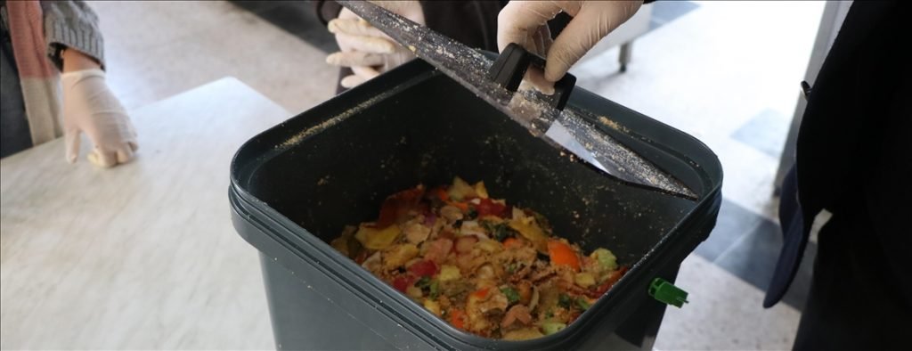 Bilişim Teknolojileri Öğretmeni ve Buğday Derneği gönüllüsü Hiba Sinem Demirkan, mutfağından çıkan gıda atıklarını evde kompost yöntemiyle değerlendirerek gübre haline dönüştürüyor.